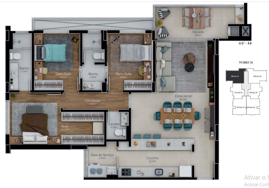 Com apartamentos espaçosos e acabamento alto padrão, oferecemos um estilo de vida sofisticado e contemporâneo para aqueles que buscam o melhor em conforto e conveniência.